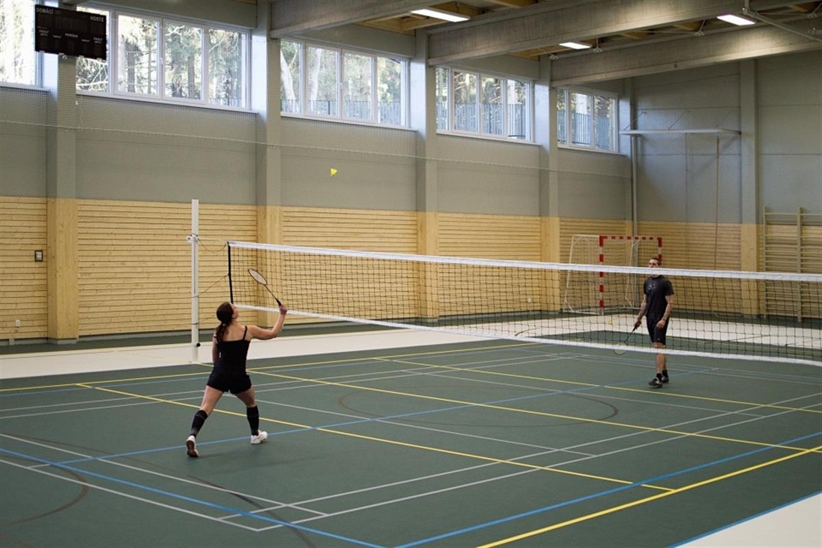 The sports hall in the depandance offers an area for ball sports -badminton, volleyball, tennis, futsal, floorball, basketball. Climbing wall, laser shooting range and visual sports (golf, soccer, hockey, baseball, football, rugby, basketball, cricket, zombie dodgeball and carnival shooting gallery with the ball.